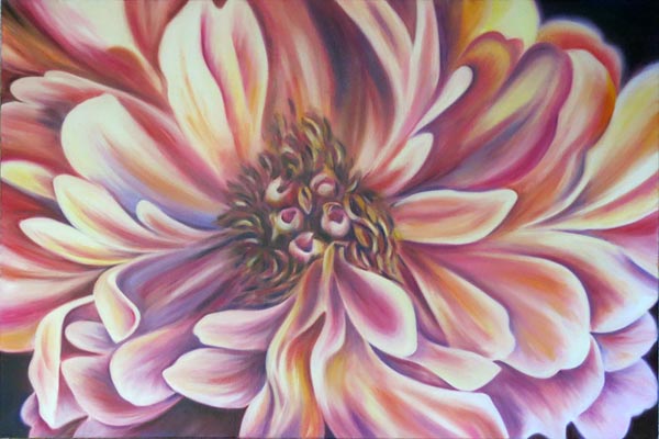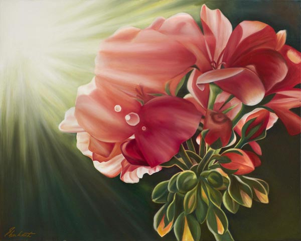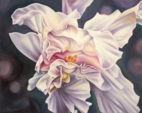 "To me, flowers are the ultimate symbol of universal joy and inner peace.” says Eberhart. “A flower doesn’t ask for permission to bloom, it just does and in doing so, it shares it’s beauty and grace with the world.” Her florals are usually portrayed from an intimately close view point with every detail rendered to perfection. Never timid or shy, the blooms stand confidently on the canvas. Eberhart’s paintings embody the strength that can be found by inner-reflection and contemplation."