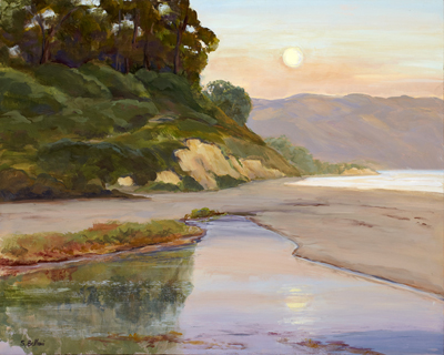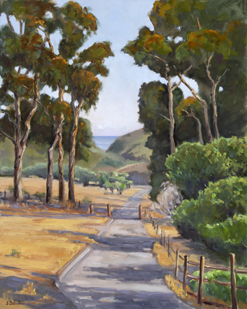 "As an artist, I love the opportunity to get outside in our inspiring local landscape. I usually paint on location, “en plein air”, which simply means in the open air. I feel very lucky to be able to spend time at Santa Barbara County’s beautiful beaches, ranches, and in valleys, vineyards, towns & mountains. I paint in oils, acrylics, on different substrates and I sell my originals as well as Limited Edition prints on canvas and paper. I think success in a landscape painting is when you can almost feel the air, the sunshine, a cool shadow or smell the sea. " Susan Belloni